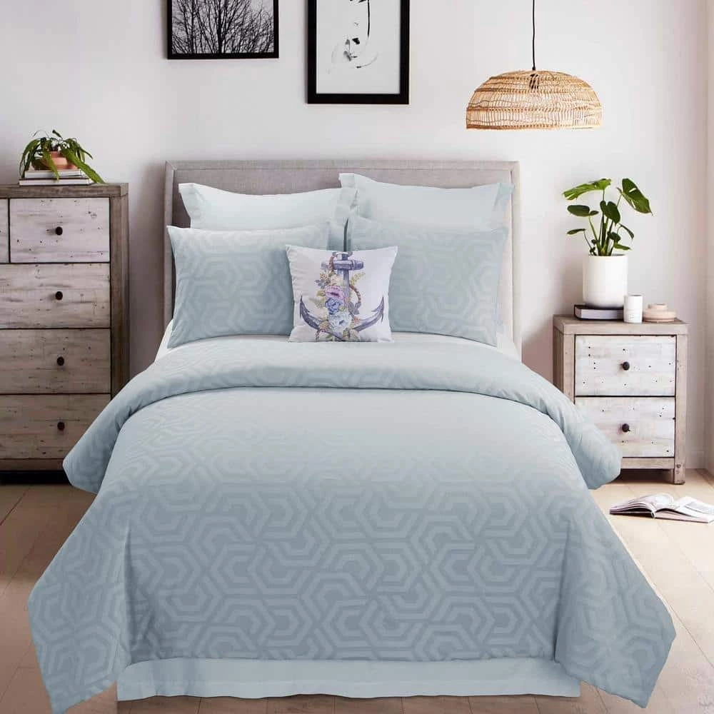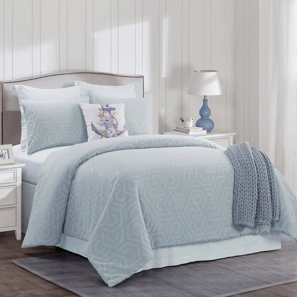 This brilliantly designed Seville 3-piece cotton comforter set from DONNA SHARP brings a modern touch to any master bedroom or guest room. The ultra-soft 100% cotton jacquard fabric is garment washed to provide a wonderfully soft touch, right out of the bag. This bedding set is adorned with a subtle geometric pattern to enhance the look of your room. A hidden pin tuck secures the batting in place without interrupting the pattern, creating a smooth, seamless appearance. Shams are included and perfectly match the comforter to complete the look of the bed. Add your own personal touch by pairing Seville with one of our throws or decorative pillows (sold separately). This 3-piece set comes with 1 comforter and 2-shams and is packaged in an eco-friendly linen bag. Available in the colors Grey, Blush, Sand, Sage, and Soft Blue.