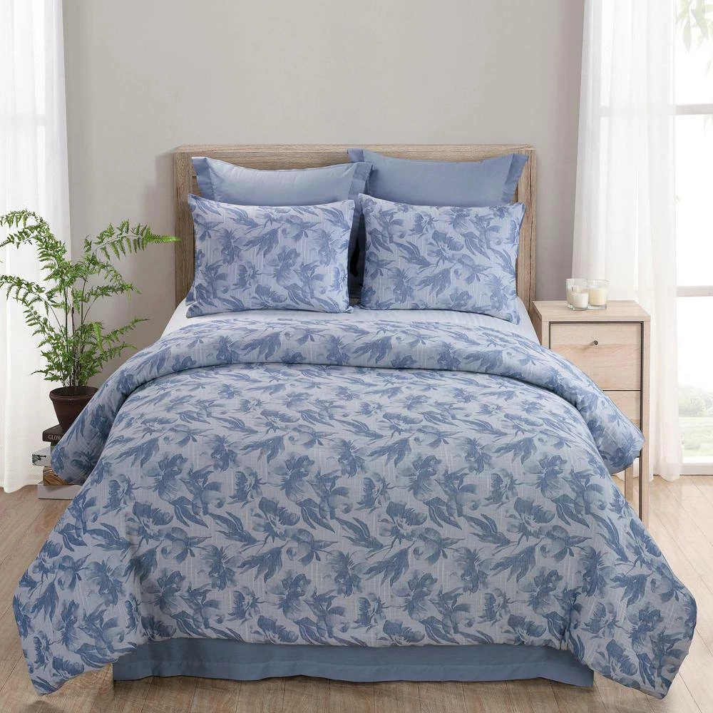 This beautifully designed Almaria 3-piece cotton comforter set from DONNA SHARP is an elegant addition to any master bedroom or guest room. The ultra-soft cotton is yarn dyed and garment washed to provide a wonderfully soft touch, right out of the package. This bedding set features a charming floral pattern, inspired by traditional watercolor paintings. A hidden pin tuck secures the batting in place without interrupting the pattern, creating a smooth, seamless appearance. Shams are included and perfectly match the comforter to complete the look of the bed. Add your own personal touch by pairing Almaria with 1-of our throws or decorative pillows (sold separately). This 3-piece set comes with 1-comforter and 2-shams and is packaged in an eco-friendly linen bag.