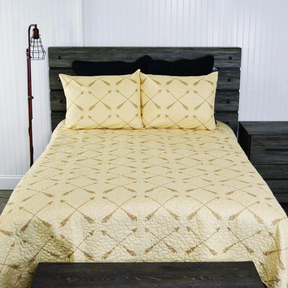 - King set includes 1 quilt 104 in. x 96 in. and 2 king shams 20 in. x 36 in., queen set includes 1 quilt 90 in. x 90 in. and 2 standard shams 20 in. x 26 in., twin set includes 1 quilt 68 in. x 90 in. and 1 standard sham 20 in. x 26 in.