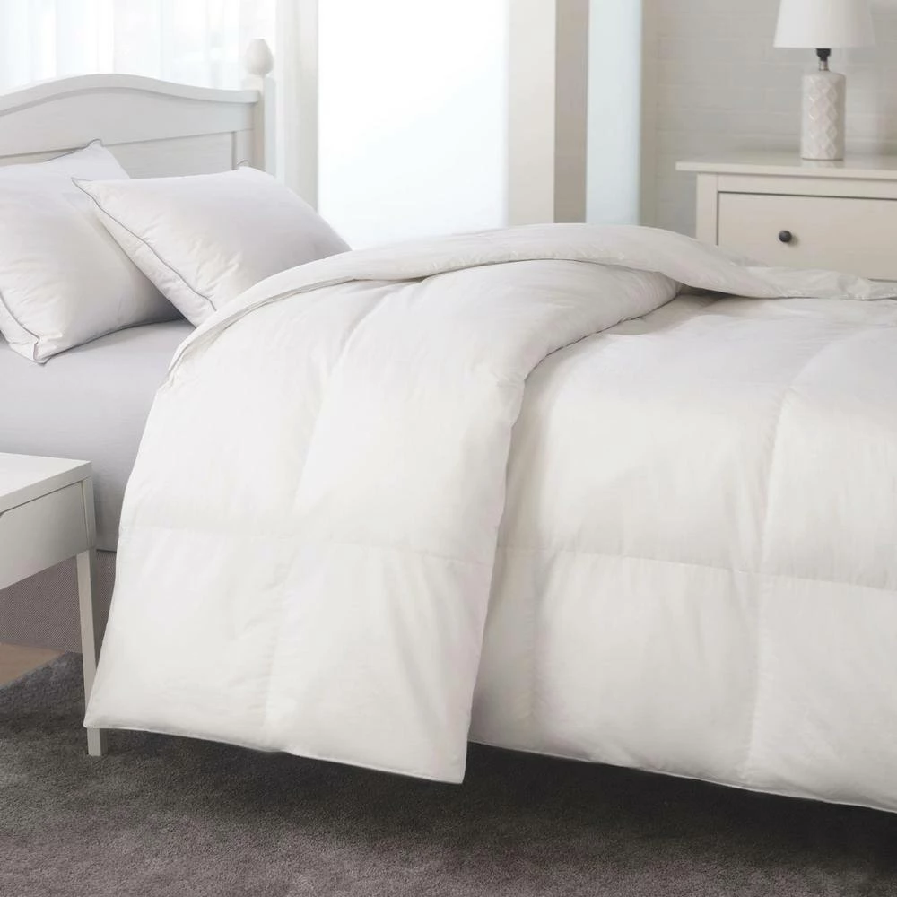 The Candice Olson White Duck Down Comforter adds extra warmth on cold winter nights. The crisp white baffle box design keeps the fill evenly distributed and adds a touch of luxury to any room. Made of high-quality, soft 233 Thread Count 100% cotton, this is filled with 550 fill power White Duck Down. Hypoallergenic and machine washable, our White Duck Down is responsibly sourced and certified through RDS.