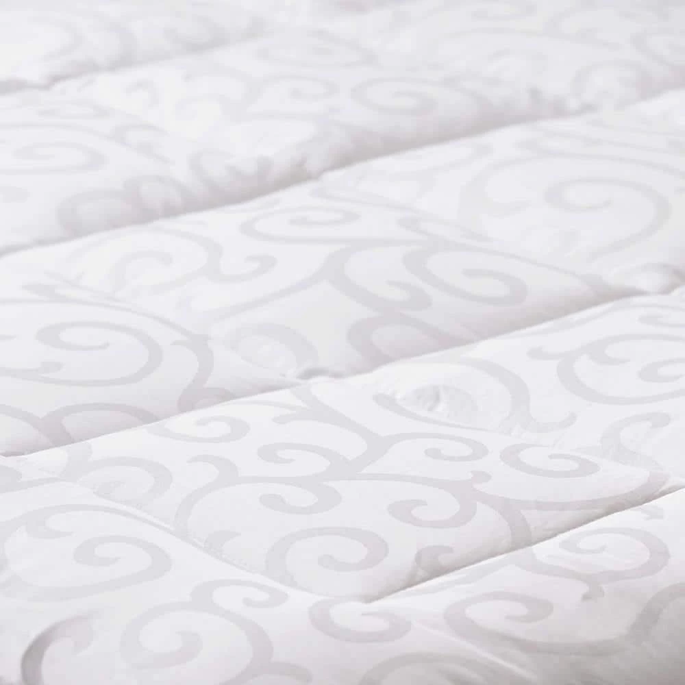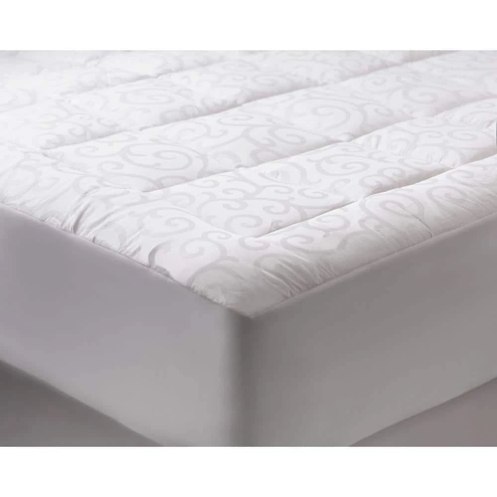 Enjoy a more comfortable, cooler night’s sleep with our Candice Olson 300 Thread Count 100% Cotton Jacquard Mattress Pad. This pad is filled with a luxurious hypoallergenic ultra-loft fiber and fits mattresses up to 18 inches deep. Designed to help limit dust mites and other allergens, it is durable, long lasting, and machine washable for easy care.