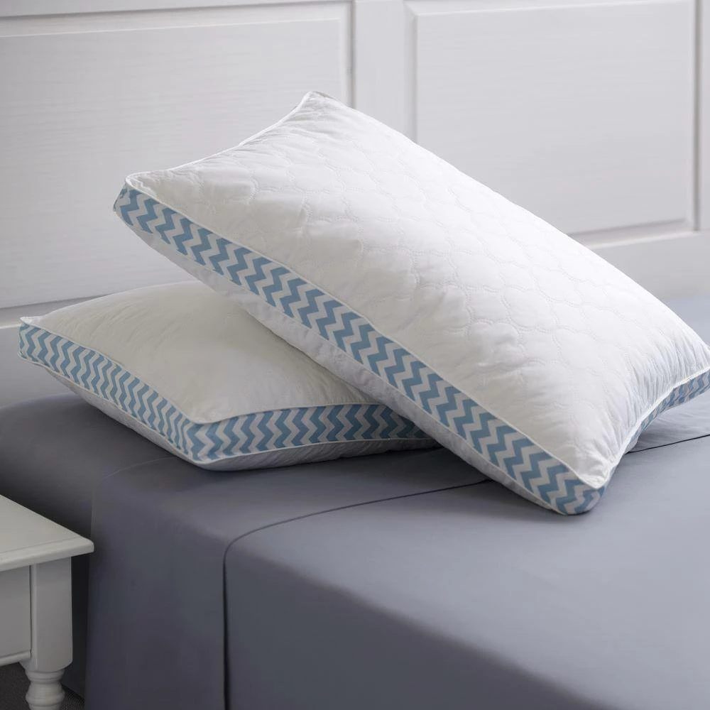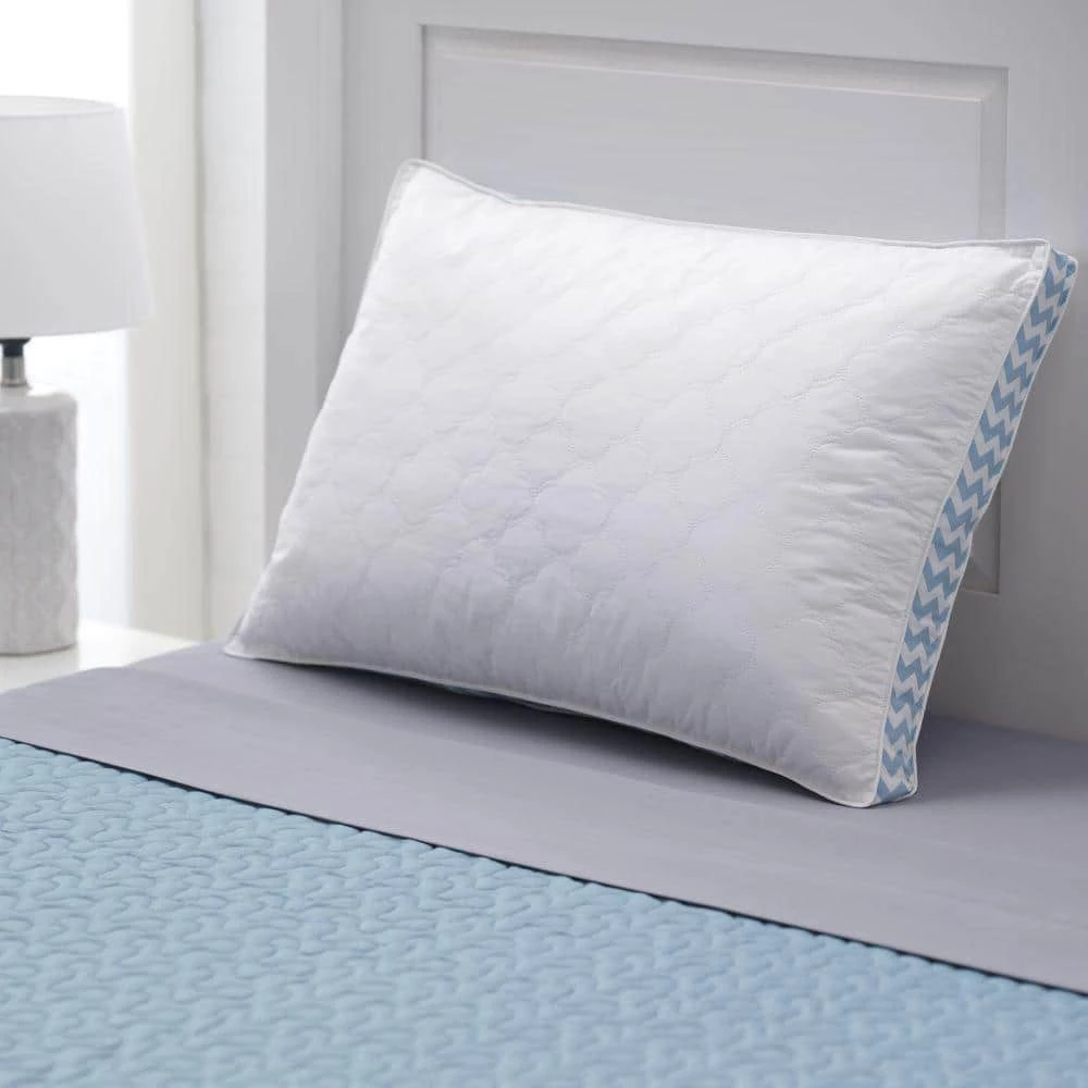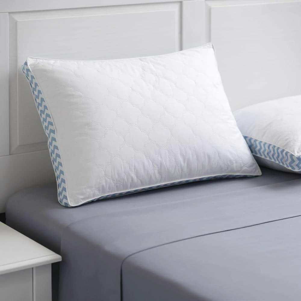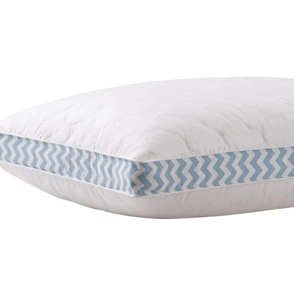 Made with 233 thread count cotton, this luxurious down alternative fill pillow provides the perfect cloud-like softness for a perfect night of sleep. The pillow also features a 2 in. gusset for extra support. The cloud quilted pattern with soft blue, chevron printed pattern will create the perfect modern look for your room.