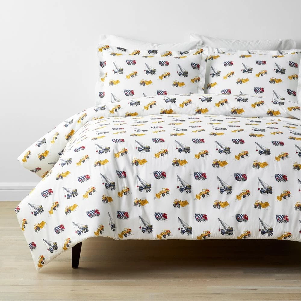 - Your little builder will rest easy on our kid’s organic cotton percale duvet cover set