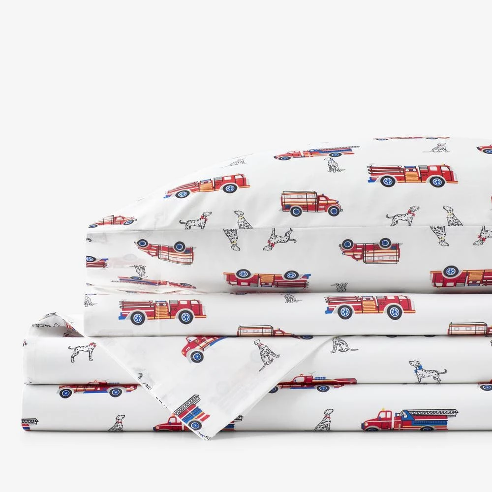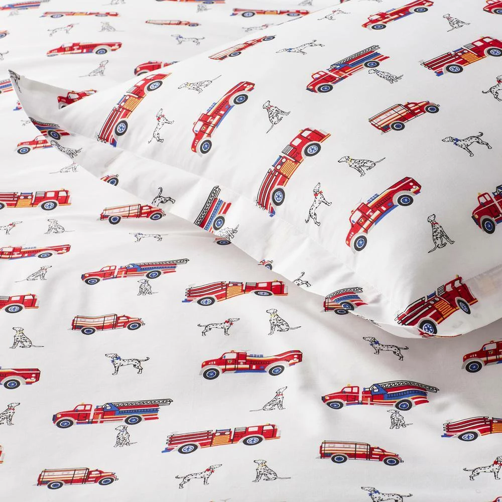 - Faithful dalmatians will keep your little firefighter safe while he sleeps on organic cotton percale sheet set