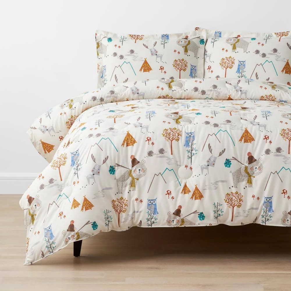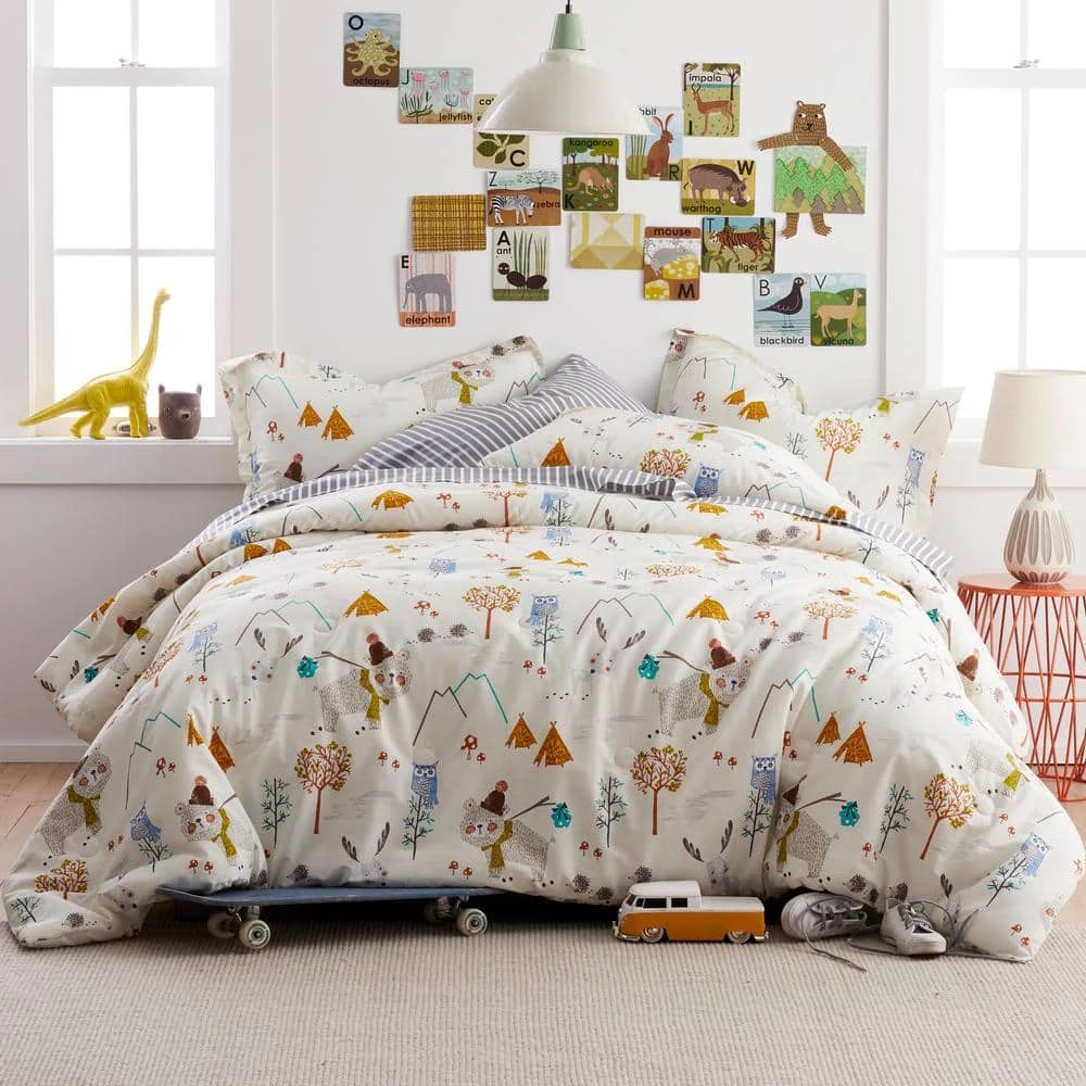 Even when they’re not out in the wilderness, your little adventurer can still sleep in nature with our Forest Campers Organic Cotton Percale Comforter Set. This fun, whimsical print of tents, bears, moose, and more is reproduced on premium organic cotton percale for a feeling that’s cool and crisp to the touch. Exclusively by The Company Store.