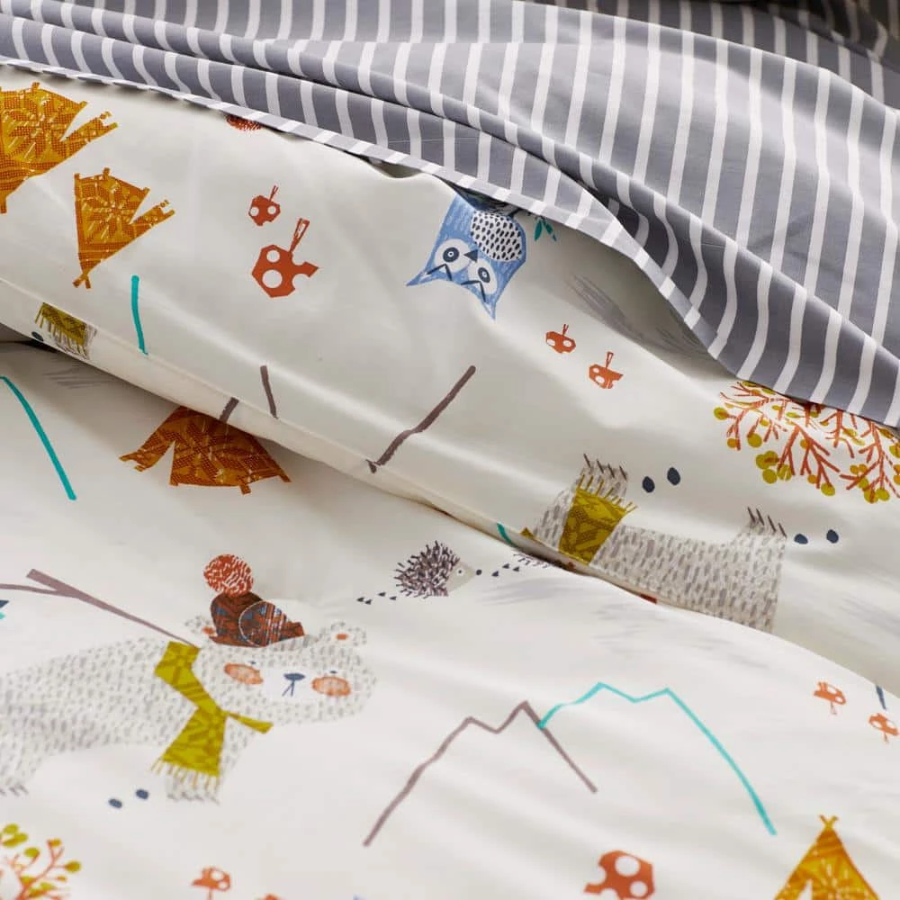 Even when they’re not out in the wilderness, your little adventurer can still sleep in nature with our Forest Campers Organic Cotton Percale Duvet Cover Set. This fun, whimsical print of tents, bears, moose, and more is reproduced on premium organic cotton percale for a feeling that’s cool and crisp to the touch. Exclusively by The Company Store.