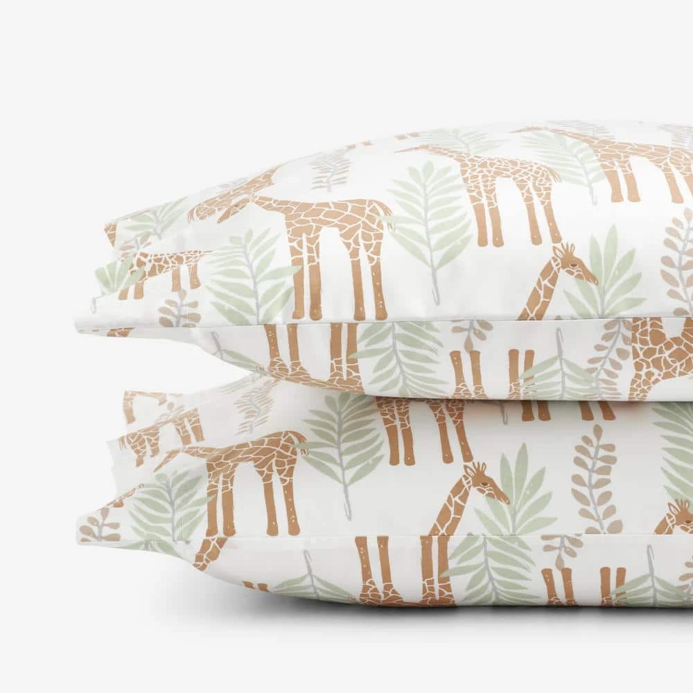 Send your kid on safari from the comfort of their own home with our organic cotton percale pillowcases patterned with herd of gentle giraffes. Our eco-friendly bedding is good for your kid and the planet. Exclusively by The Company Store.
