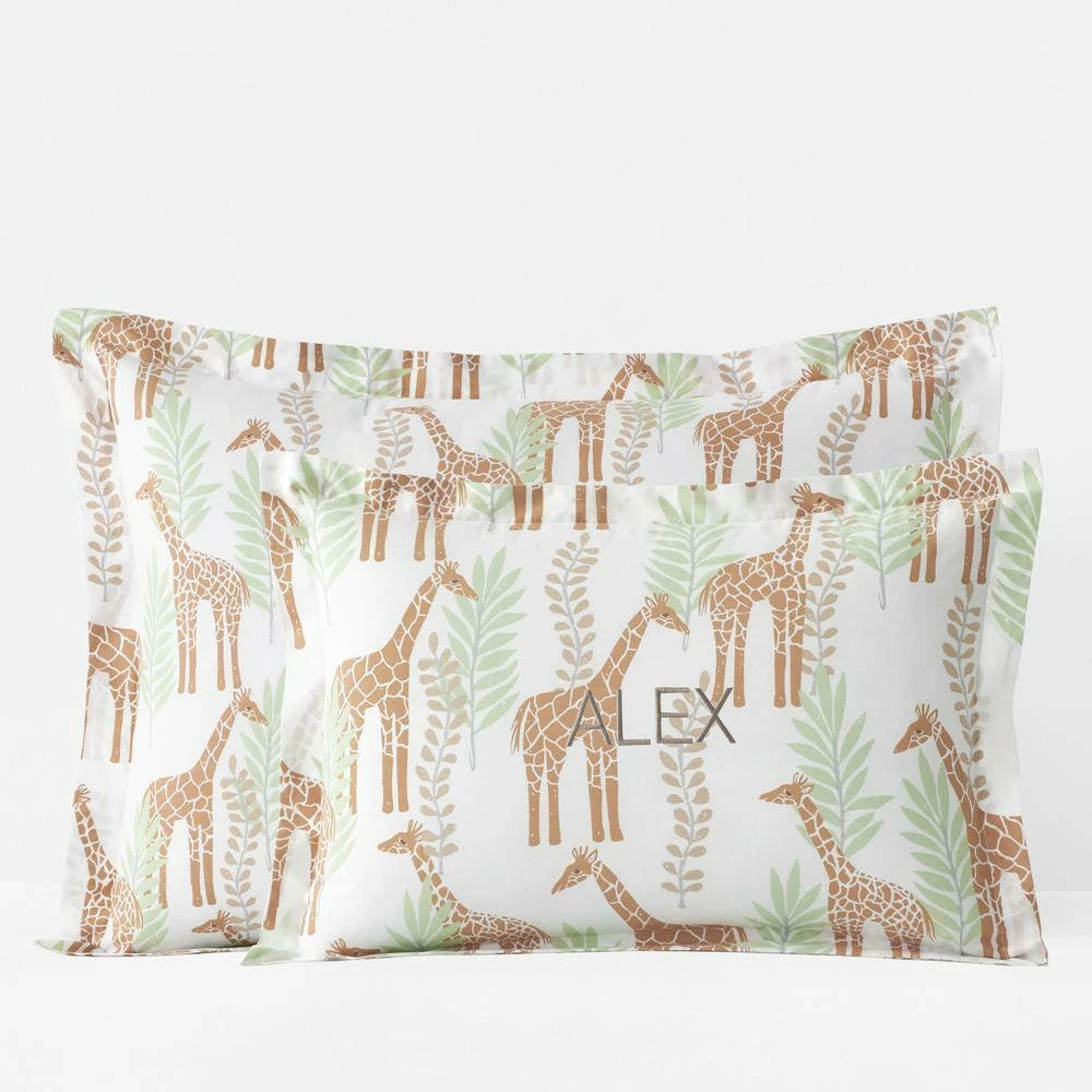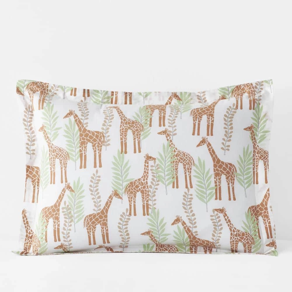 Send your kid on safari from the comfort of their own home with our organic cotton percale sham patterned with herd of gentle giraffes. Our eco-friendly bedding is good for your kid and the planet. Exclusively by The Company Store.