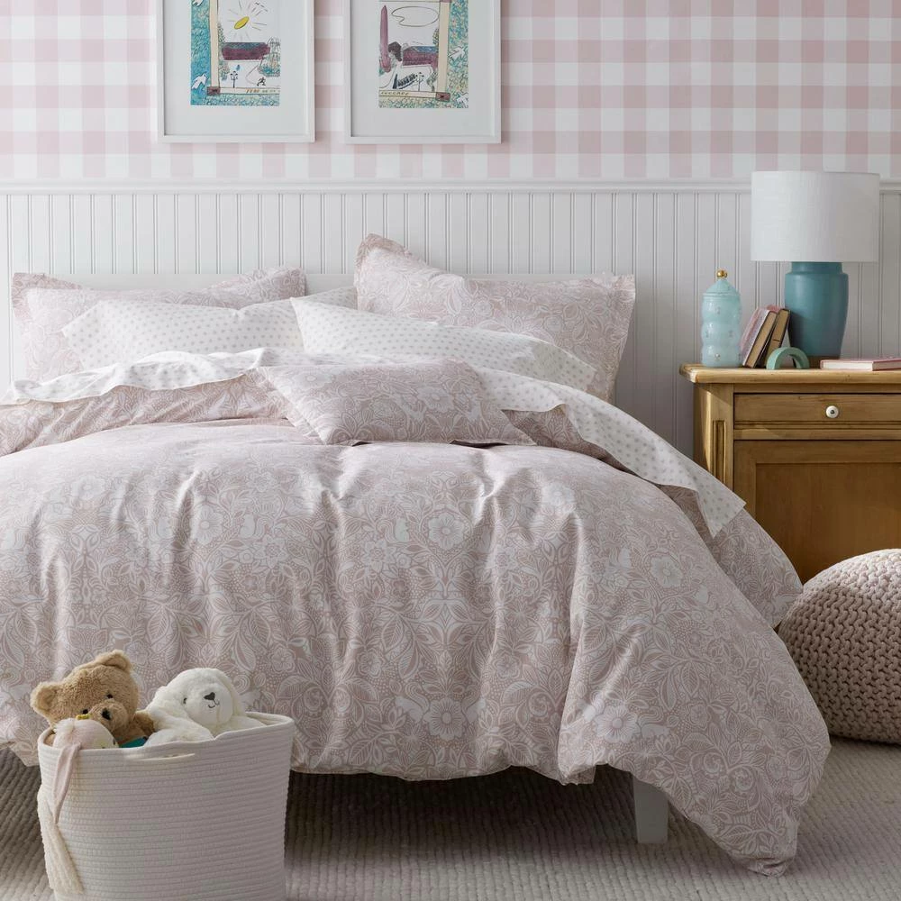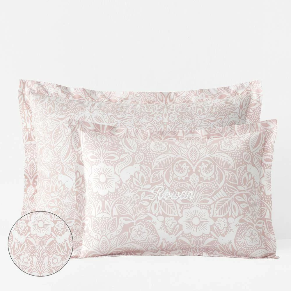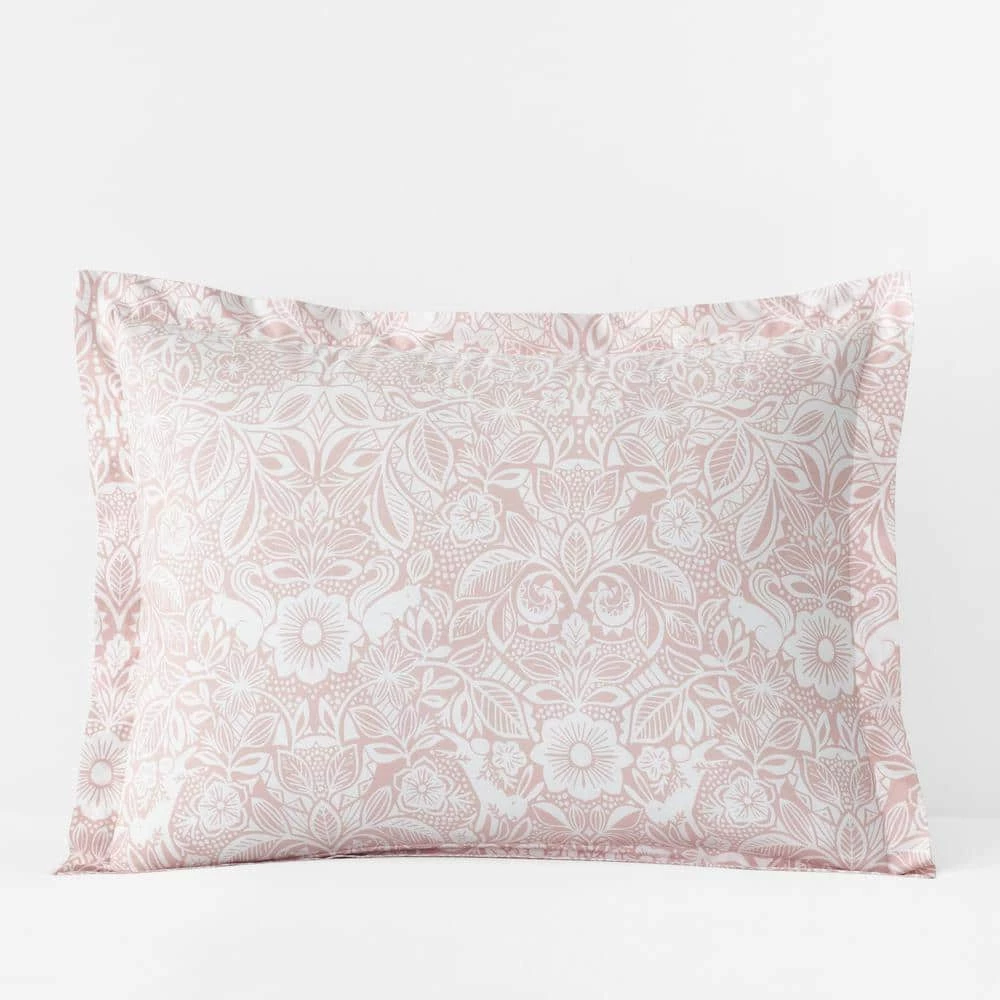 Look closely to find the menagerie of bunnies, birds, and squirrels hidden amongst the foliage of this gorgeous pink-and-white floral sham for kids. Sewn of premium organic cotton percale for a crisp finish, our eco-friendly bedding is good for your kid and the planet. Exclusively by The Company Store.