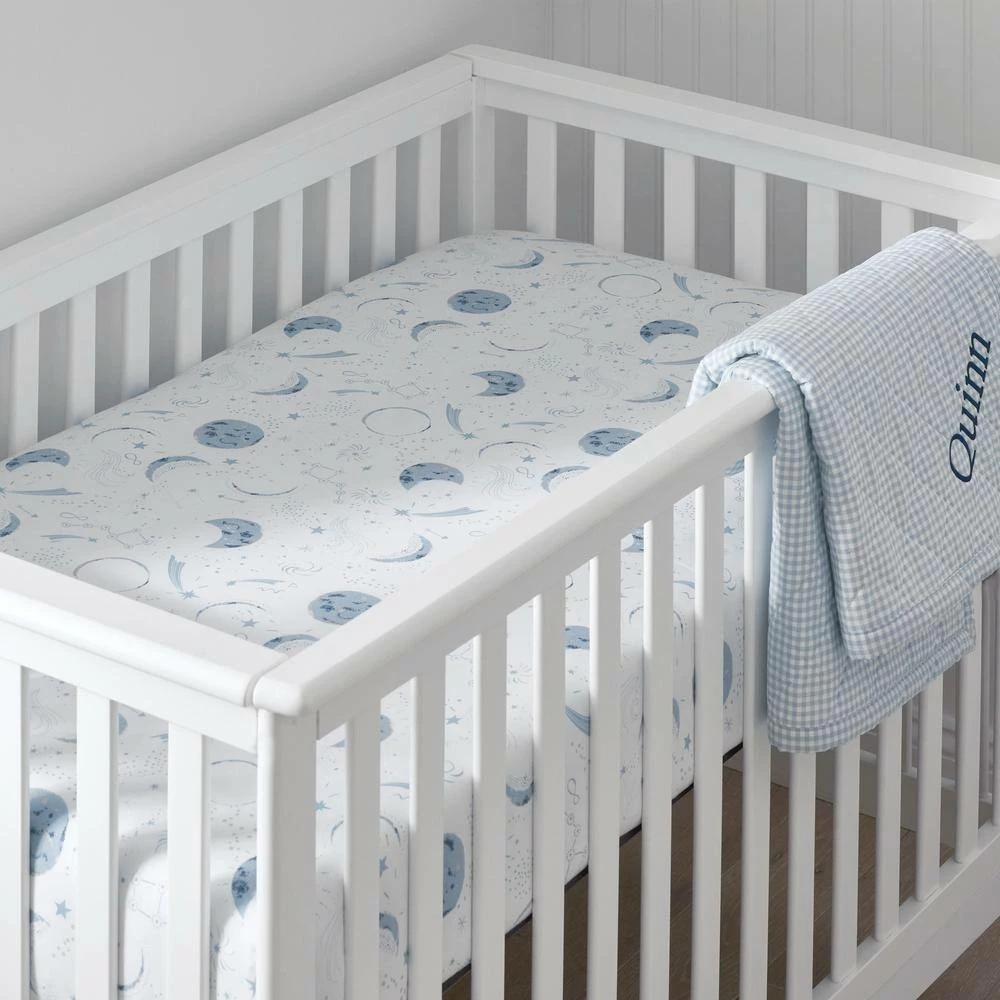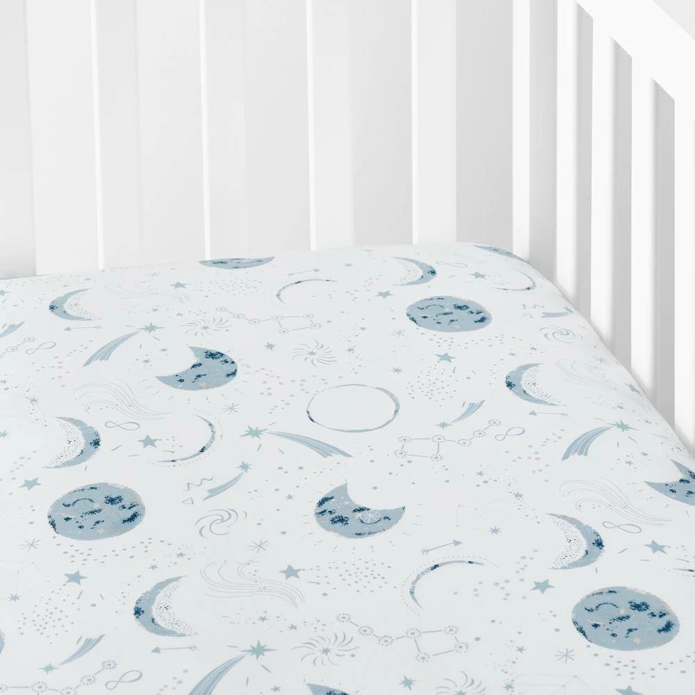 Illustrated with crescent moons, twinkling stars, and comets, our consciously crafted organic cotton crib sheet creates a dreamy spot for baby astronomers. This eco-friendly design coordinates with other elements of our organic percale baby bedding collection. Exclusively by The Company Store.