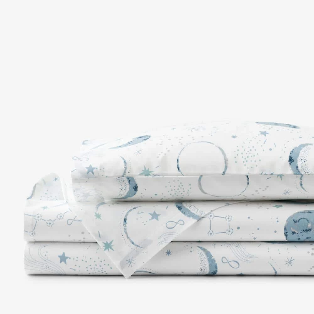 Illustrated with crescent moons, starry constellations, and comets, our Night Sky organic cotton toddler sheet set encourages budding astronomers to dream big. This eco-friendly collection is good for your little one and the planet. Exclusively by The Company Store.