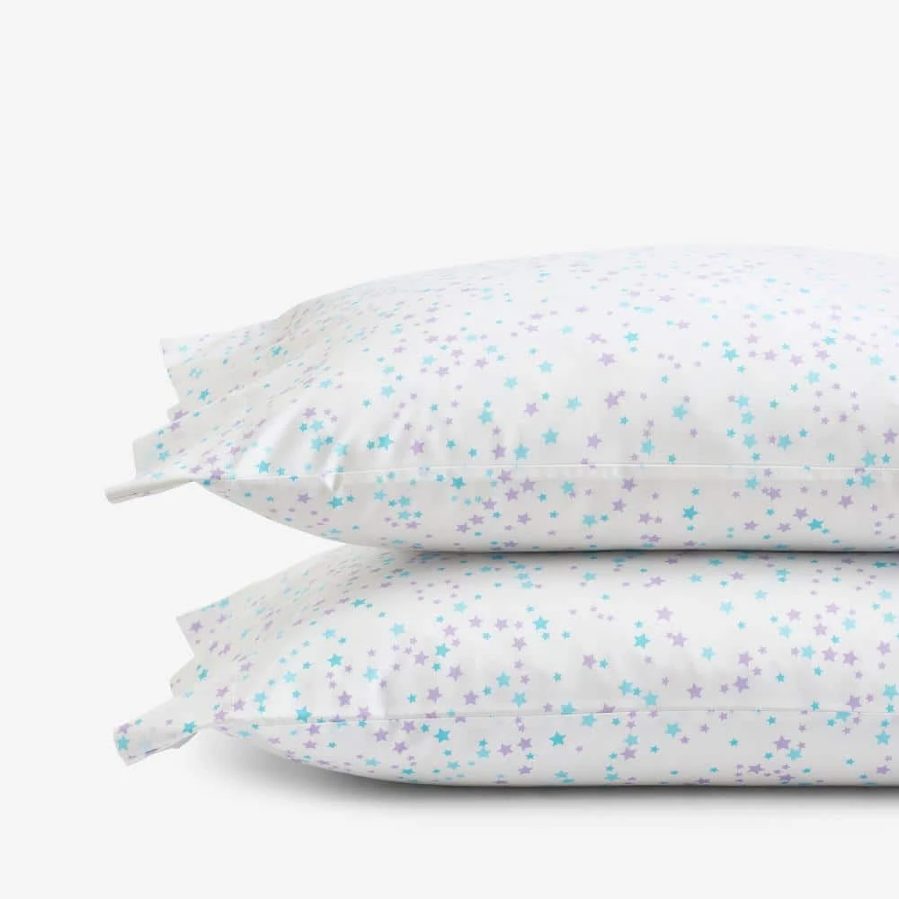 - Stars twinkle brightly across this kids organic cotton percale pillowcases