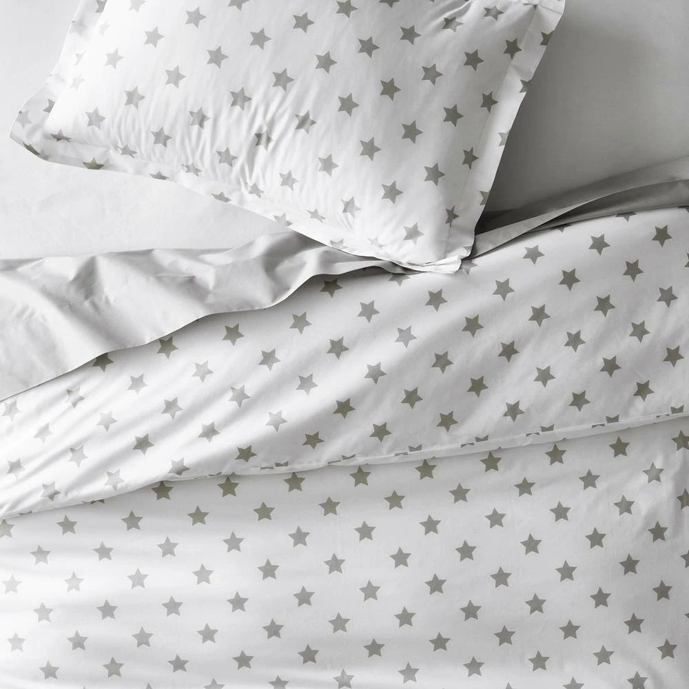 - A galaxy of stars shines brightly on kid’s certified organic cotton percale duvet cover set