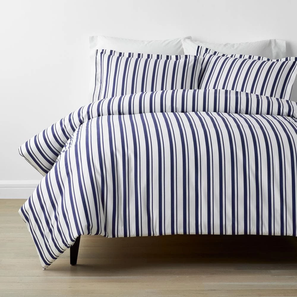 Some things never go out of style and stripes are definitely one of them. Reproduced on premium organic cotton percale for a cool, crisp hand, our thick-and-thin version adds a fun twist to this tried-and-true classic. Exclusively by The Company Store.