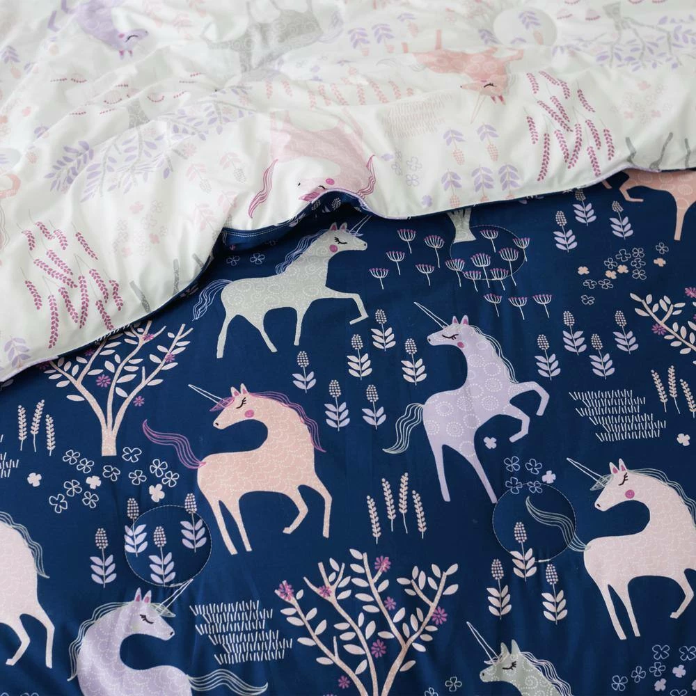 They say that unicorn sightings are rare, but we think that’s just a myth. Set in a magical forest, a herd of playful unicorns runs wild and free on our eco-friendly organic percale duvet cover set-so parents will love it as much as their little ones. Exclusively by The Company Store.