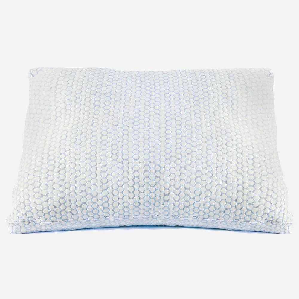 Improve your sleep with the Coolmax Cooling Touch Gusset Pillow covered with a specially knitted cooling fabric that supports airflow. This exceptionally soft and cool-to-the-touch pillow is covered with a unique white and blue dotted pattern Coolmax fabric that wicks away moisture and heat. It keeps the air flowing to maintain a consistent temperature and provides ultimate breathability. Filled with lofty polyester fiber, the Coolmax Pillow offers medium firmness that is perfect for all types of sleepers and the 1 in. gusset adds an additional level of comfort and support. Machine washable.