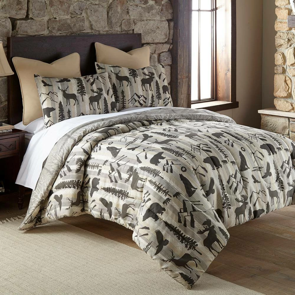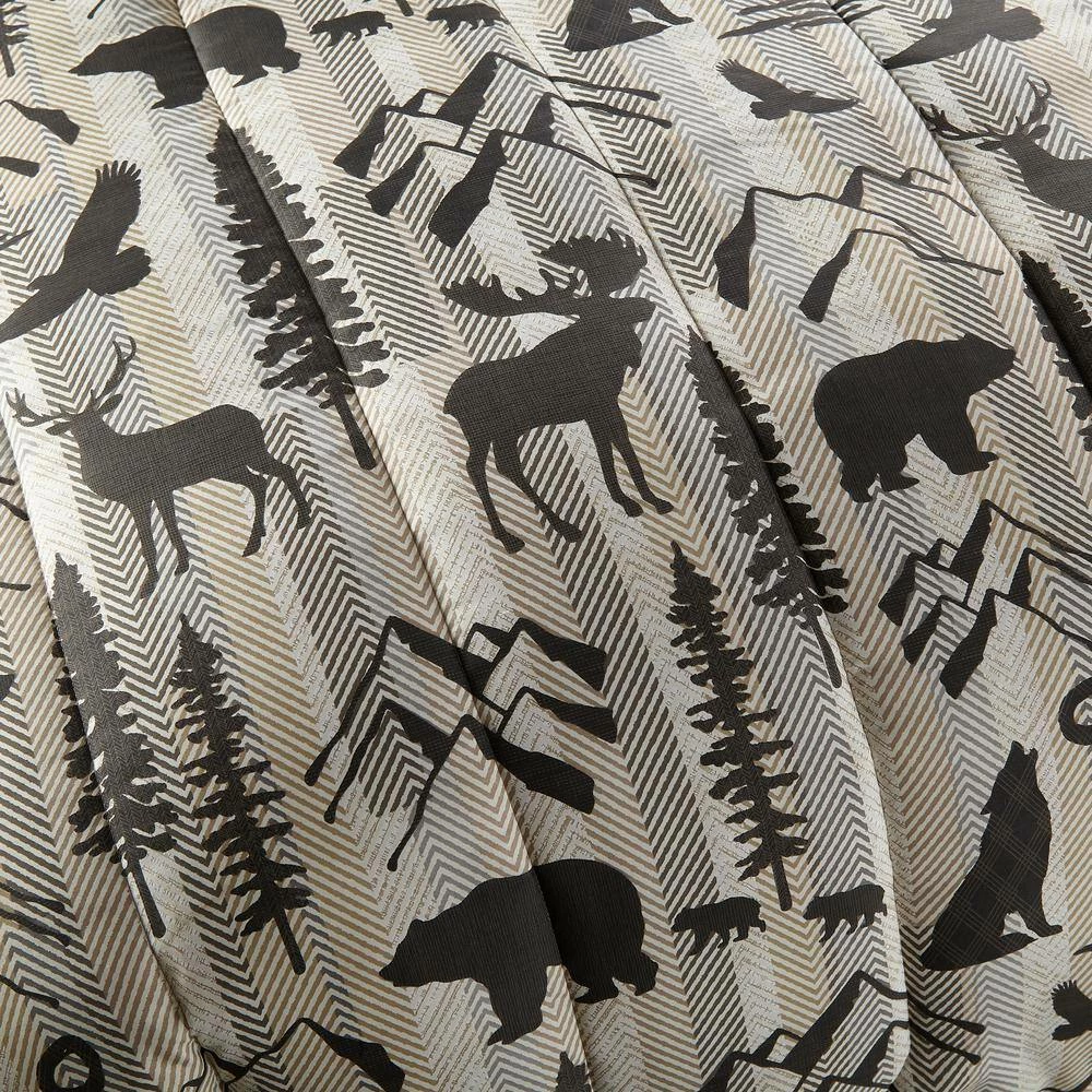 Feel as though you are lying peacefully in the forest or among graceful wildlife with this beautifully illustrated 3-piece reversible comforter set from Your Lifestyle by Donna Sharp. Change your room decor weekly, with either side depending on your mood and interior decor needs. Colors include wheat, ivory and chocolate on one side, and silver / grey tones on the reverse. 100% easy care machine washable polyester. Set includes a comforter and 2 pillowcases. Image on pillowcases may vary. All accessories sold separately.