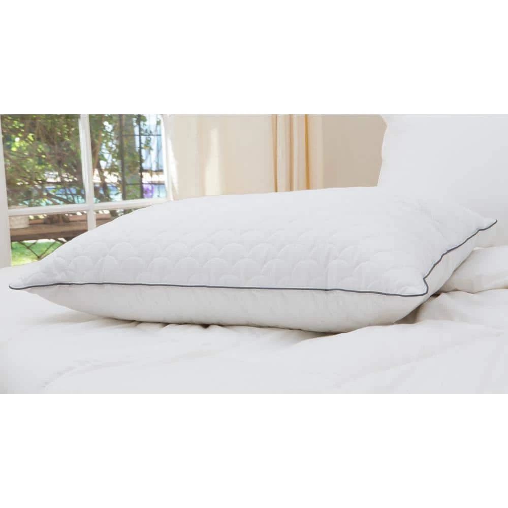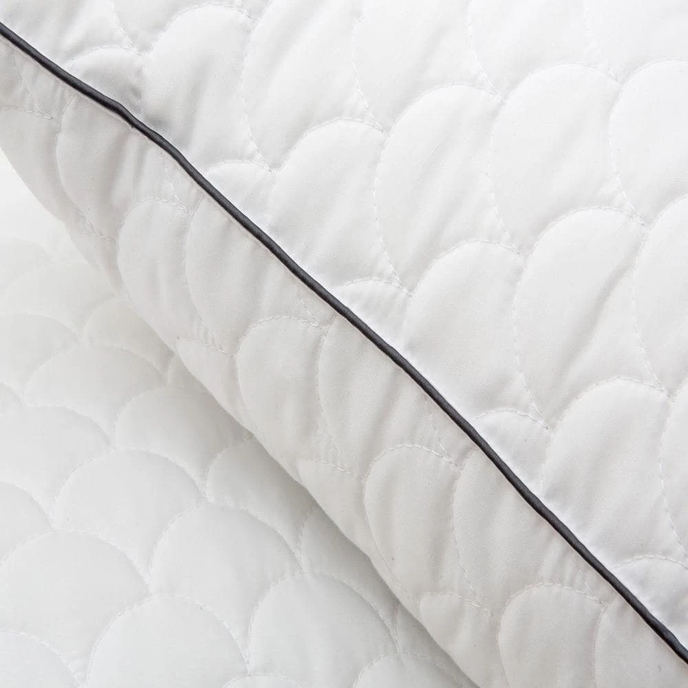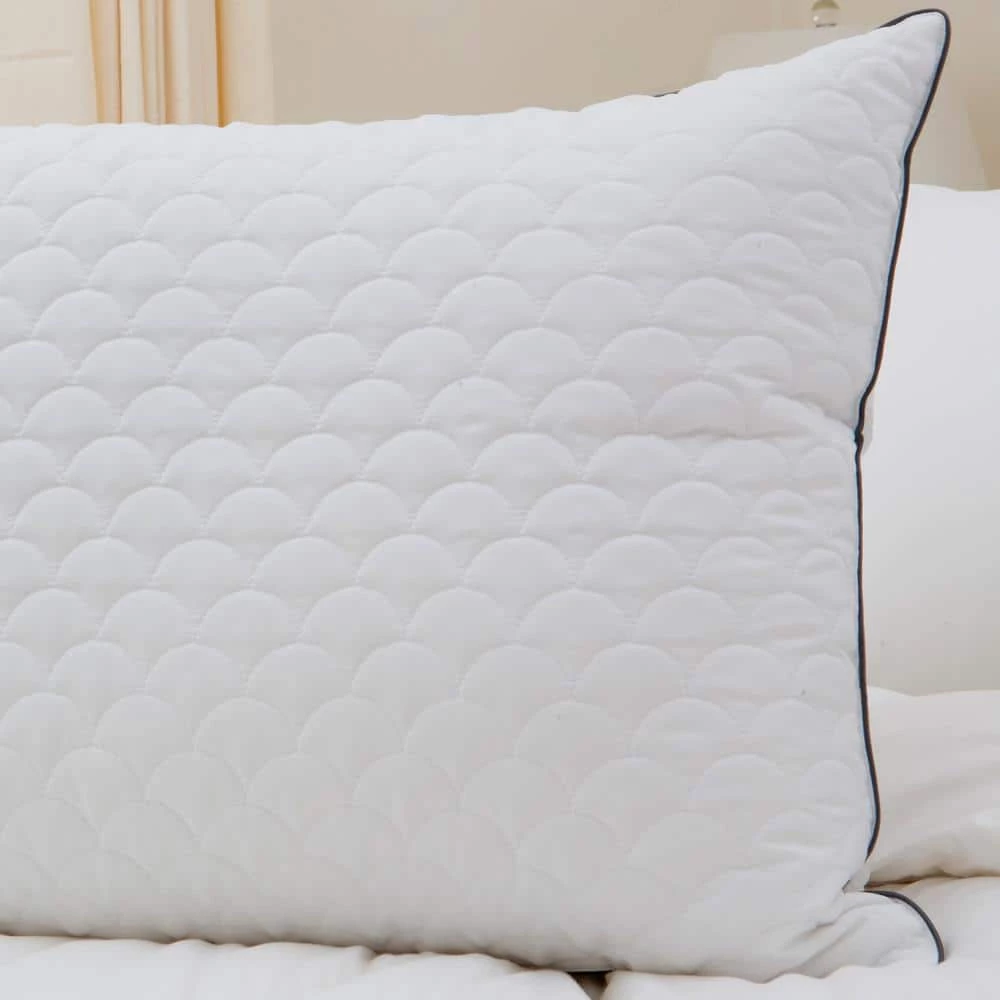 Sleep well with this Nikki Chu quilted jumbo pillow. The scallop quilting and charcoal satin piping makes an attractive design. For comfort, this down-alternative pillow offers polyester fiberfill.