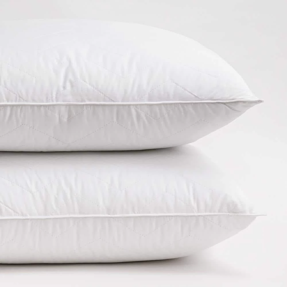 Recreate your vacation at home with a curated collection of hotel-style pillows. These pillows are created with the same luxurious fabrics and fills that you usually only find at expensive resorts. These superior quality pillows will give you that opulent feeling that you get when you lay your head down on a freshly fluffed pillow post turn-down service. Escape into luxury. Bring that relaxed vacation feeling into your home with these resort-style pillows. This set of pillows is as soft and inviting as an ocean breeze. Generously filled with true down-alternative fiber, this set of pillows embodies classic luxury. Made to the same high-quality standards as resorts, these pillows are machine washable for easy care.